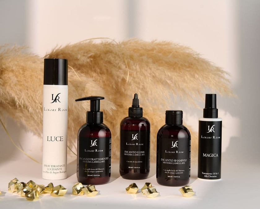 Al suo interno racchiude una selezione esclusiva dei migliori prodotti Hair Luxury Room Professional, studiati per offrire un rituale completo di cura e un trattamento intensivo che valorizza la bellezza naturale dei tuoi capelli.